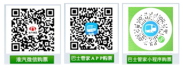 为方便广大旅客元旦假期出行,即日起汽车客票预售至2022年1月6日,各位旅客可通过以下渠道购票、查询: 1、手机扫描下方二维码,或查找公众号“淮汽集团”,关注后进行微信购票。 2、手机扫描下方二维码,下载“巴士官家”APP手机购票、巴管微信小程序。 3、车站自助售票机及售票窗口。
