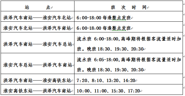 为满足广大旅客出行需求,自2023年1月4日起全面恢复“淮洪快速公交”站点、班次。