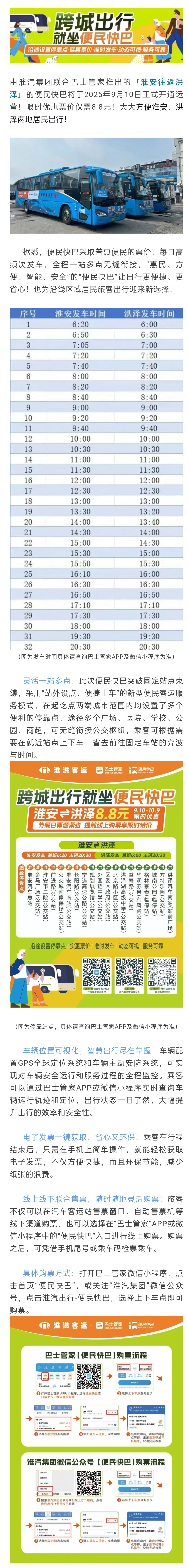 淮洪便民快巴开线!优惠票价仅需8.8元!