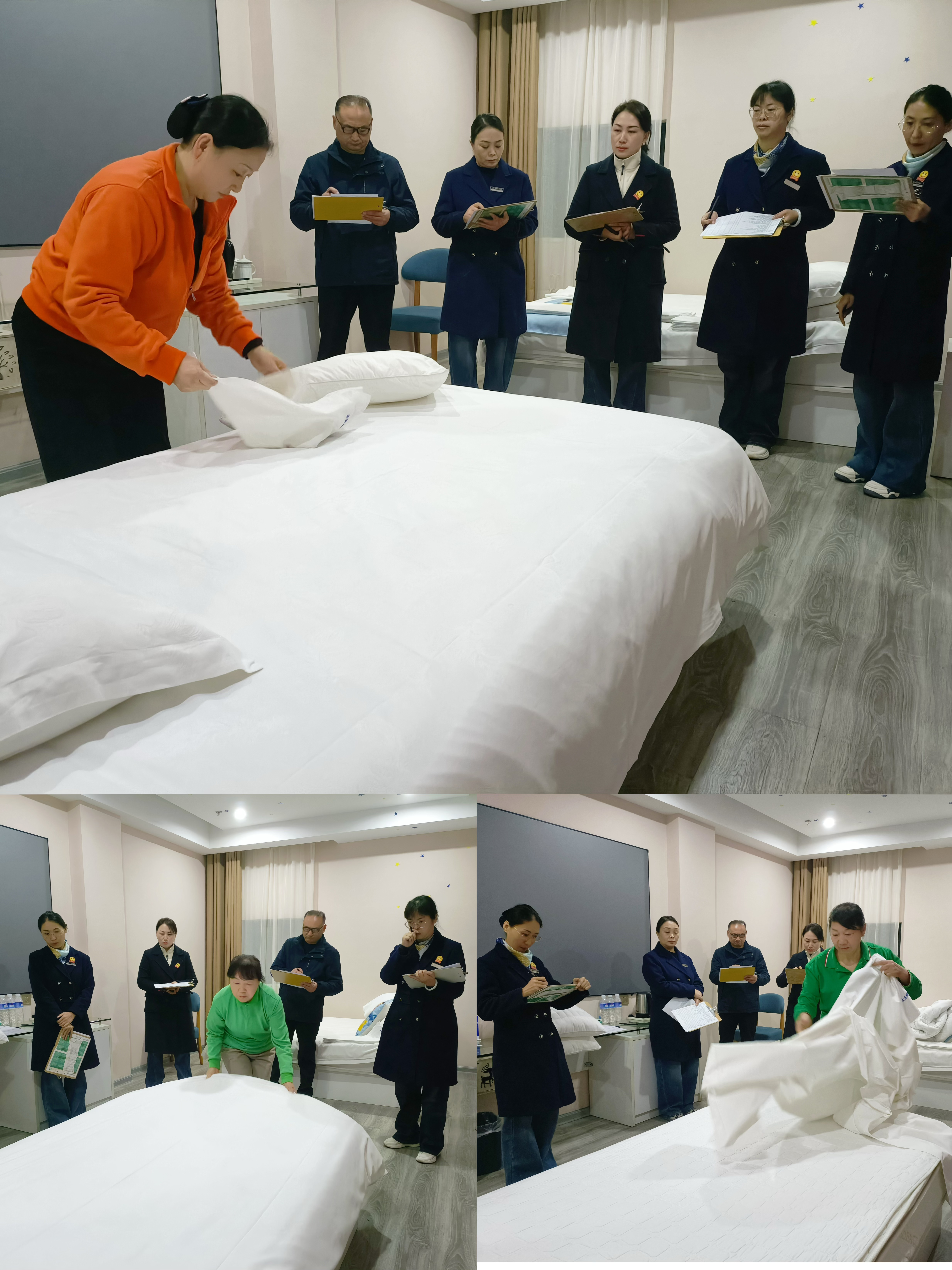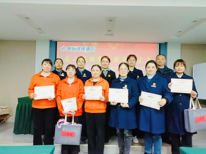 近日,旅悦连锁酒店第十一届岗位技能竞赛在汽车总站店、合肥路店圆满落幕。此次竞赛以“以赛促能,精进服务”为核心,得到公司工会大力支持。 本次竞赛前期经过各门店考核筛选,筛选前台组和客房组各一名优秀选手晋级三店总决赛。竞赛现场,选手们展现出过硬的专业素养:前厅服务比拼中,选手们从容应对礼仪规范、应急处置等考核,以高效沟通与贴心服务赢得评委认可;客房铺床环节,大家动作娴熟、精准高效,在规定时间内完成高标准操作,展现了日常训练的扎实功底。经过激烈角逐,北站店陈艳、总站店赵桂红分获前厅组、客房组一等奖;总站店于萍、北站店王正芳荣获二等奖;合肥路店张玉芹、尹秀萍获得三等奖。 表彰会上,酒店经理周晓燕向获奖选手表示祝贺,向全体参赛选手、评委及幕后工作人员表示感谢。 针对当前市场形势,周经理向全体员工提出三点希望:一是获奖选手要珍惜荣誉、发挥模范带头作用,将竞赛中的好作风、好技能传递给身边同事,实现“一人优秀带动团队优秀”;二是全体员工要主动对标先进、补齐短板,实现从“要我学”到“我要学”、从“会做事”到“做好事”的转变,以个人专业能力筑牢酒店竞争根基;三是各门店要以此次竞赛为契机,完善技能培训与激励机制,持续营造“比学赶超”的良好氛围,让“专业、贴心、高效”成为旅悦服务的鲜明标签。 此次技能竞赛的成功举办,不仅展现了旅悦员工的专业风采,更凝聚了全员攻坚克难、突围市场的共识。未来,旅悦连锁酒店将以此次竞赛为新起点,持续强化员工技能提升,以更优质的服务体验赢得客户与市场,全力扭转经营局面,书写旅悦酒店更美好的明天。(文/图:陈林林/孙红娟)