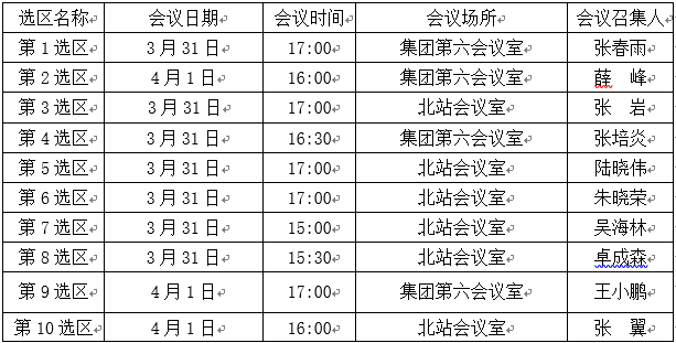 (三)各选区出资人表决会开会时间、地点,安排如下: